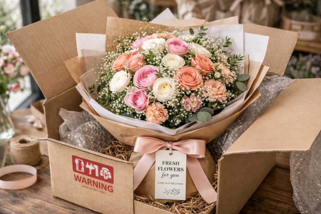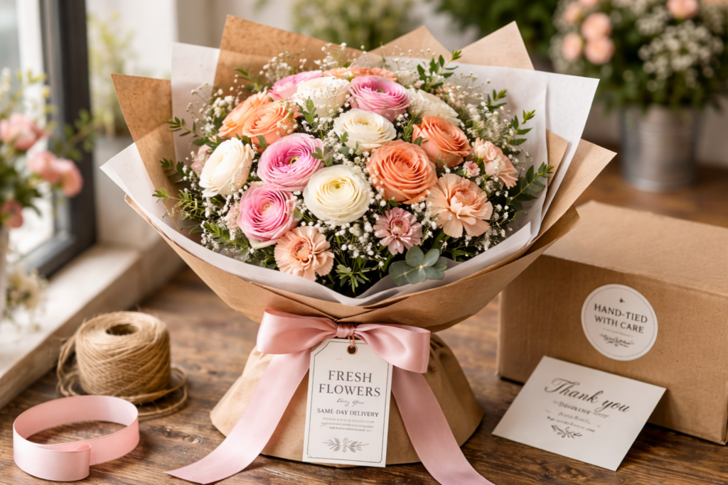Same-day flower delivery means the bouquet is prepared and delivered on the same day the order is placed, subject to timing, availability, and serviceable location.